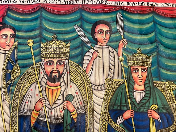 Huge 9 Feet Long Ethiopian Painting On Canvas King Yohannes Ethiopia Storyteller African Folk Art Etsy